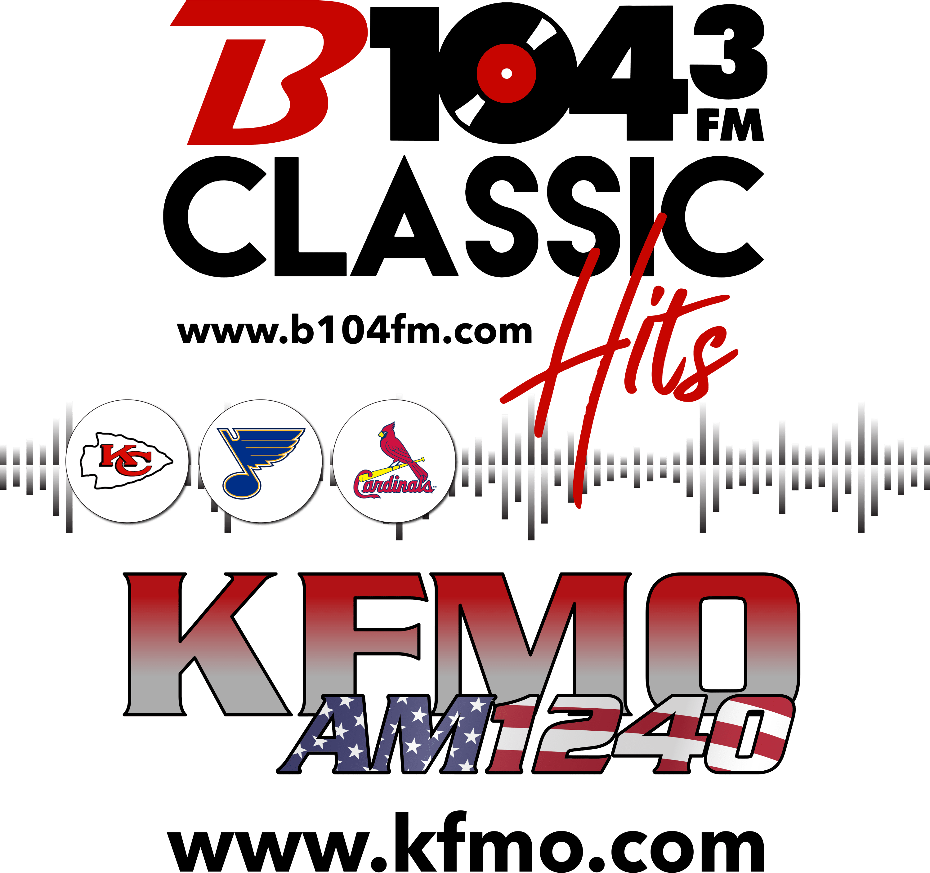 B104.3: Classic Hits- Music from the 60's, 70's and 80's,and early 90's. St. Louis Cardinals, St. Louis Blues KFMO AM: News/Talk, High School Sports, Kansas City Chiefs. Our radio and digital platforms offer excellent advertising opportunities for local businesses.