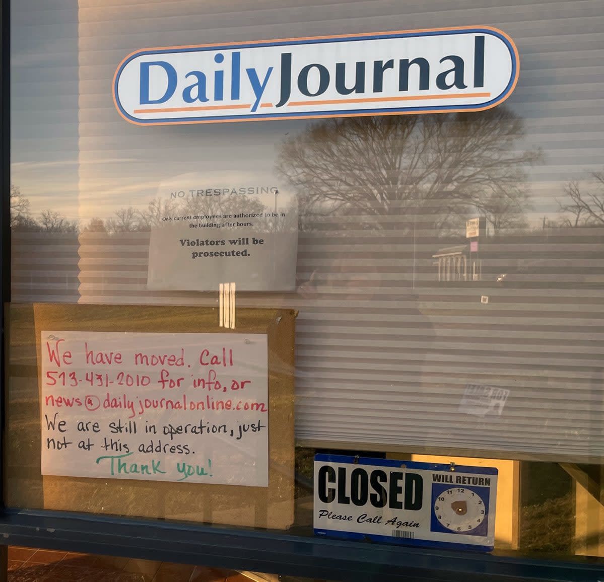The Daily Journal no longer has a Park Hills office